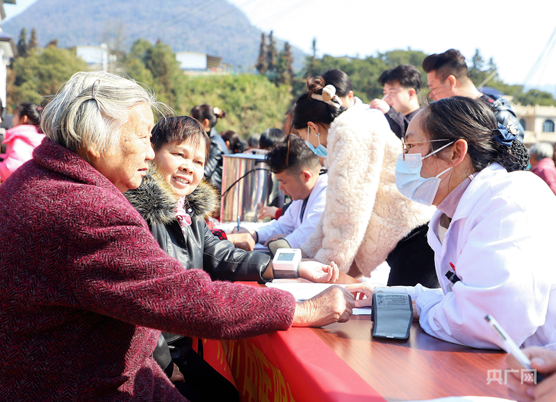 乡卫生所的大夫们为村平易近量血血糖